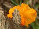 फल शरीर एक अनियमित आकृति है, और आमतौर पर के माध्यम से टूट छाल मृत शाखाओं की। यह 7.5 सेमी (3.0 इंच) चौड़ा और 2.5 से 5.0 सेमी (1.0 से 2.0 इंच) तक ऊँचा होता है, जो दिखने में विभिन्न प्रकार के लोब या मस्तिष्क की तरह होता है। फलों का शरीर जिलेटिन की तरह होता है लेकिन गीला होने पर कठोर, और सूखने पर कठोर होता है। सतह आमतौर पर चिकनी होती है, झींगा पारभासी, गहरे पीले या चमकीले पीले-नारंगी, हल्के पीले रंग के लिए लुप्त होती, शायद ही कभी अप्रकाशित और सफेद या बेरंग। फलों के पिंड एक गहरे लाल या नारंगी रंग में सूख जाते हैं। बीजाणुओं , जन में देखा जाता है, सफेद या हल्के पीले कर रहे हैं।