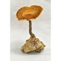 फलों के शरीर के विकास के शुरुआती चरणों को चार असतत चरणों में विभाजित किया जा सकता है। पहले में, 0.5-1.5 मिमी (0.02–0.06) में मापने वाली डिस्क के आकार की गांठें सब्सट्रेट की सतह पर दिखाई देती हैं । जैसा कि गाँठ आकार में फैलता है, इसके केंद्र से एक प्राइमर्डियल स्टाइप निकलता है। स्टाइप लंबा हो जाता है, ऊपर की ओर बढ़ जाता है, और दो प्रकार के हाइपल तत्व विकसित हो जाते हैं: लंबे, सीधे और चिकने बेसल बालों वाले हाइप और शॉर्ट स्टाइप हाइपे, जिनमें से कुछ को फुलाया जाता है और कसकर पैक किए गए हाइपल तत्वों की एक कोशिक्टिव परत से बाहर निकलते हैं। अंतिम चरण में, जो तब होता है जब स्टाइप 2–3 मिमी (0.08–0.12) लंबे होते हैं, अपरिपक्व कैप दिखाई देते हैं, जिसमें अलग-अलग फिलामेंट जैसे पैराफिस के साथ लकीरें और गड्ढे होते हैं । एक्स्ट्रासेल्युलर श्लेष्मकि रिज की परत ऊतक को आकार और कठोरता प्रदान करती है और संभवतः इसे निर्जलीकरण से बचाती है।