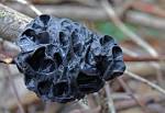झुर्रीदार, जिलेटिनस; एक पीला या पारभासी छाला के रूप में शुरुआत की लेकिन जल्द ही बनने अनियमित लोब्ड को तकिया के आकार का, effused प्रकट होकर लहराता , मस्तिष्क की तरह संरचना में; आमतौर पर गहरे काले रंग, लेकिन कभी-कभी छोटे नमूनों में काले से जैतून-काले रंग के लाल होते हैं; 1-2 सेंटीमीटर चौड़ी लेकिन अक्सर आसन्न स्पोरोफ़ोर्स के साथ व्यापक पैच बनाने के लिए; ऊपरी सतह चिकनी बिखरी हुई, स्तंभन, छोटी फुहारों के साथ खुरदरी होती है।